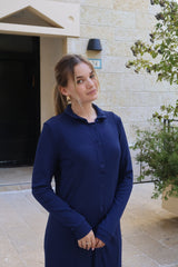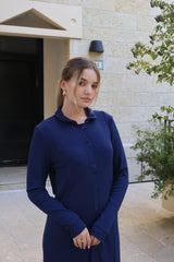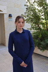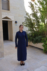 Ribbed Button Dress / Navy
