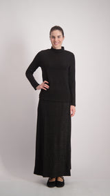 Ribbed Velvet A-line Dress With Belt / Petrol