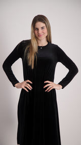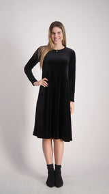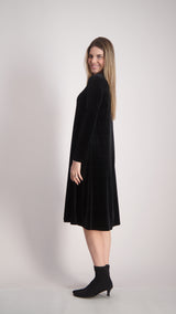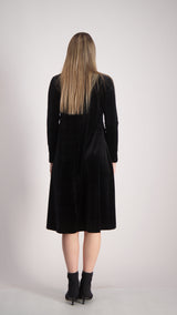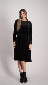 Velvet A-line Dress With Belt / Black