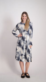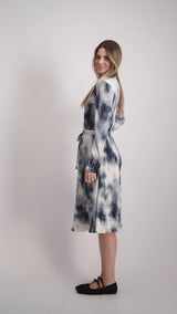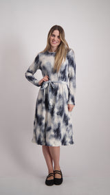 Ribbed Velvet A-line Dress With Belt / Tie Dye