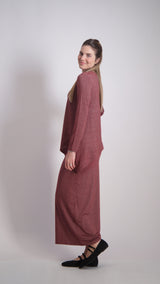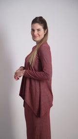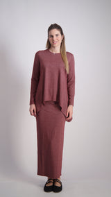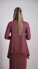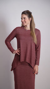 Ribbed Asymmetric T-shirt / Burgandy Lurex